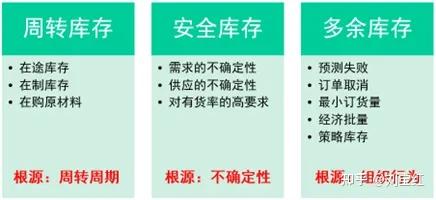 2.安全库存:我们所处的世界不完美,不确定性总是有的,所以安全库存也是合理的,除非是不确定性太大,比如供应商的选择与管理不到位,供应的不确定性太大;销售和运营协调有限,需求的不确定性太大,导致的安全库存过高。
