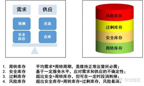 1.周转库存:维持正常的周转所需,对原材料来说就是在途订单,对成品来说就是在制库存。此类库存的风险相对较低,设计变更、需求变化等是最大的风险源。周转库存是合理的,除非周转周期太长,或者预测准确度太低而导致库存过高。
